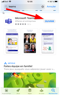 Dans la mesure où vous n’avez pas déjà Teams sur votre cellulaire aller le chercher sur l’App store ou sur Play store