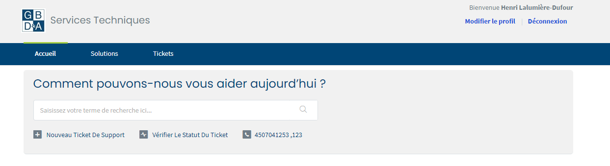 Lorsque vous retournerez sur la page support.gbda.ca, ultérieurement, vous pourrez vous connecter grâce aux informations de connexion initiales et accéder à la plate-forme le plus aisément du monde