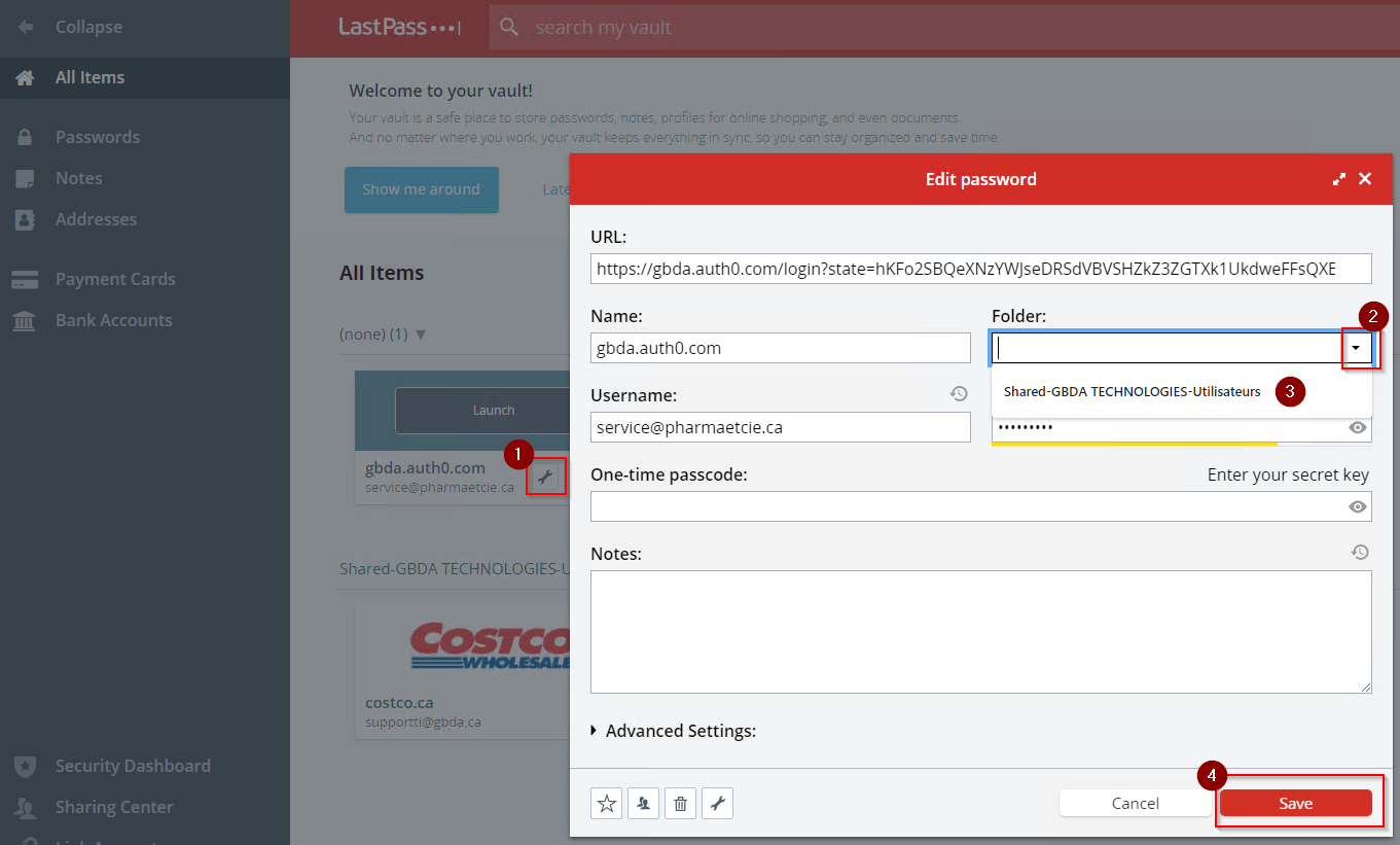 Lorsqu’un répertoire de mots de passe vous sera partage, vous recevrez un courriel vous avisant de ceci