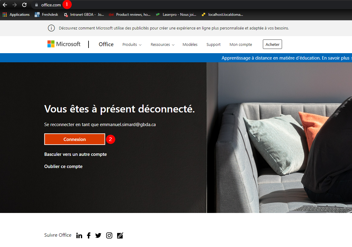 Par la suite, rendez-vous sur le site d'office 365 : https://www.office.com/