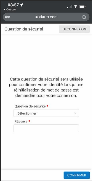 Vous recevrez par courriel une invitation où vous devrez crée un mot de passe afin d'Accéder à la plate-forme Alarm.com