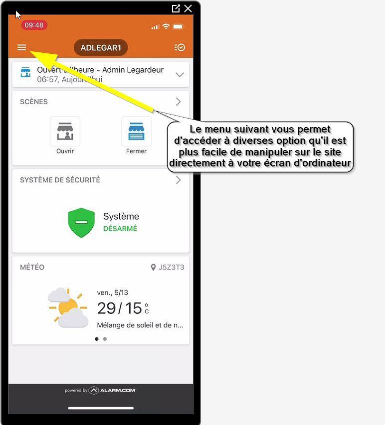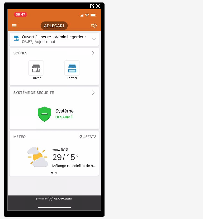 Vous avez maintenant accès à la plate-forme mobile Alarm.com