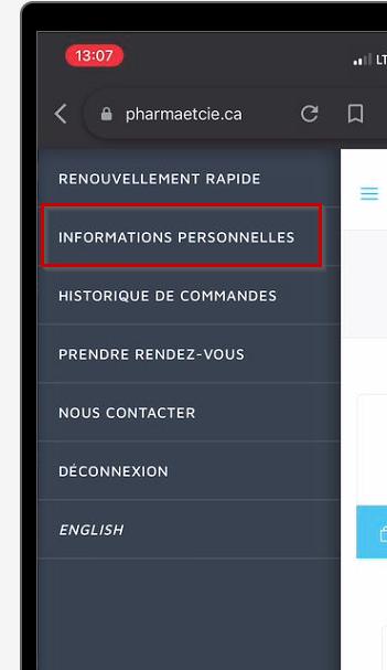 Le menu ci-bas apparaîtra où vous devrez cliquer sur informations personnelles