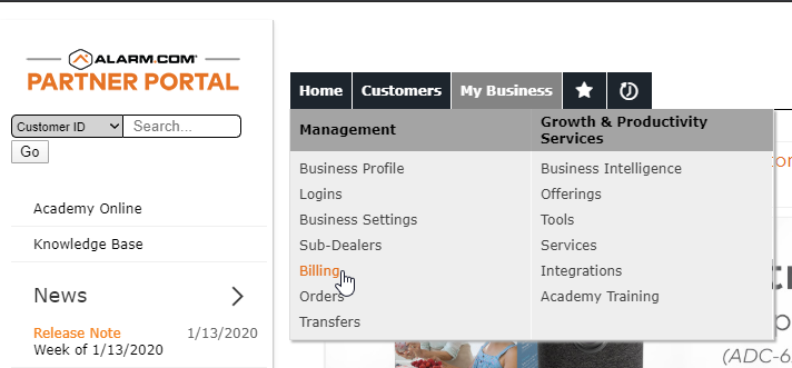 1. Naviguer vers le portail fournisseur Alarm.com