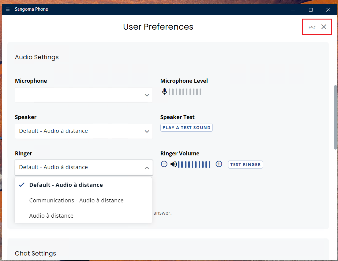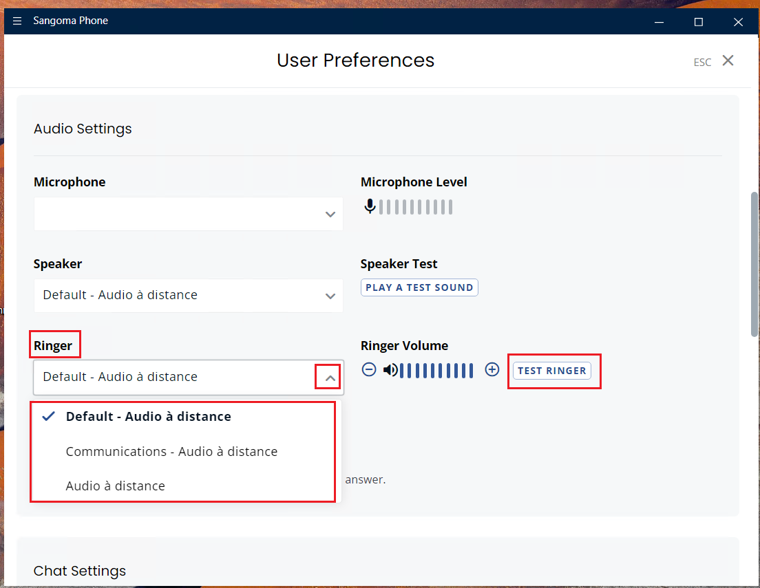 Si vous voulez changer le périphérique sur lequel votre sonnerie de Sangoma sonne, vous pouvez aller le changer dans les paramètres.