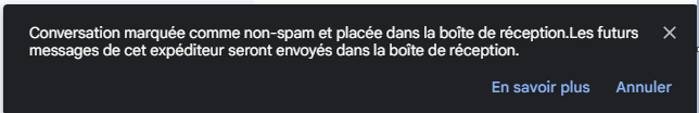 Ce message s'affichera pour aviser que les prochains messages ne seront pas considéré comme du spam :